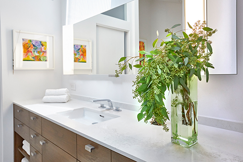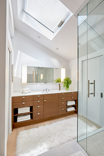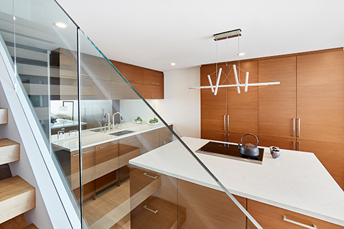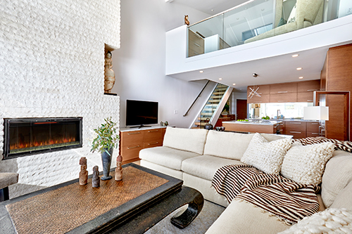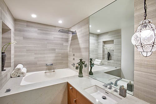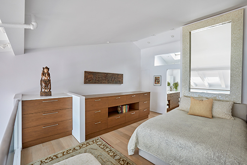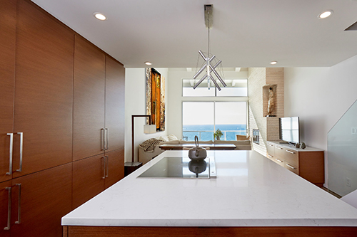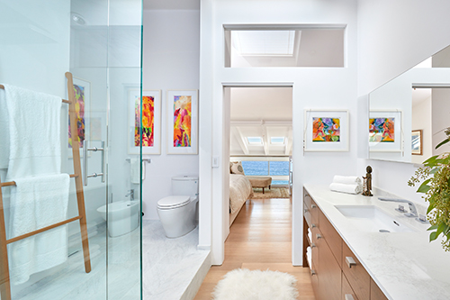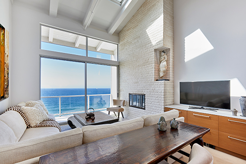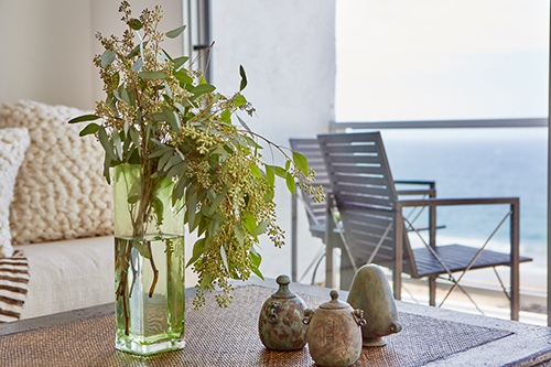 Overlooking Redondo Beach, this 750-square-foot two bedroom, two bath beachfront condominium has been renovated to maximize space and light. The owner’s sacred totems are showcased throughout.